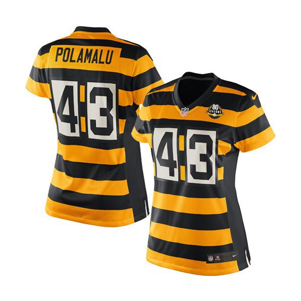 AvailableFemmes Nike Pittsburgh Steelers # 43 Troy Polamalu Élite jaune/noir alternent 80e anniversaire Throwback NFL Maillot Magasin, Pittsburgh Steelers Maillot.