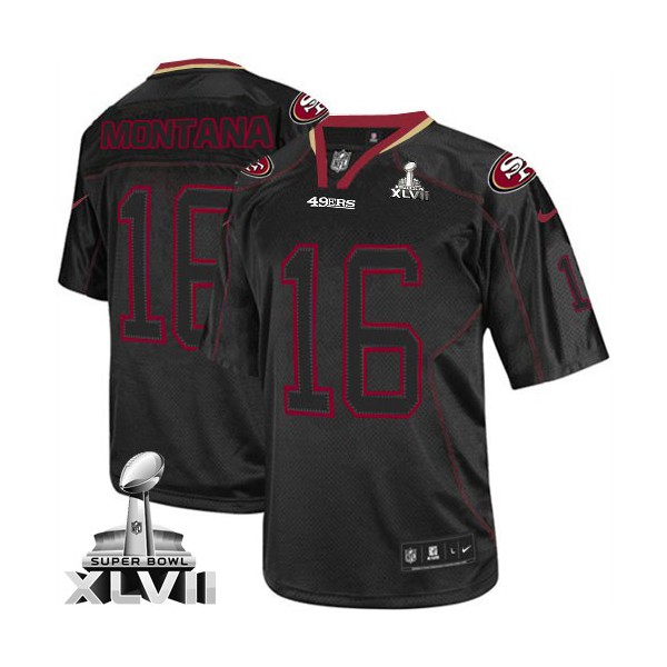 AvailableHommes Nike San Francisco 49ers # 16 Joe Montana élite Lights Out noir Super Bowl XLVII NFL Maillot Magasin, San Francisco 49ers Maillot.