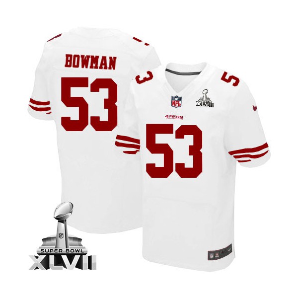AvailableHommes Nike San Francisco 49ers # 53 NaVorro Bowman Élite blanc Super Bowl XLVII NFL Maillot Magasin, San Francisco 49ers Maillot.