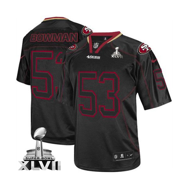AvailableHommes Nike San Francisco 49ers # 53 NaVorro Bowman élite Lights Out noir Super Bowl XLVII NFL Maillot Magasin, San Francisco 49ers Maillot.