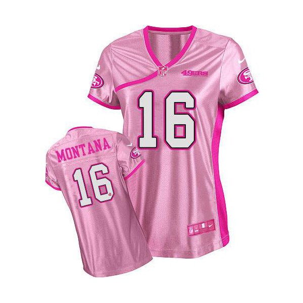 AvailableNike San Francisco 49ers # 16 Joe Montana Élite femmes rose être Luv avait NFL maillot, San Francisco 49ers Maillot.