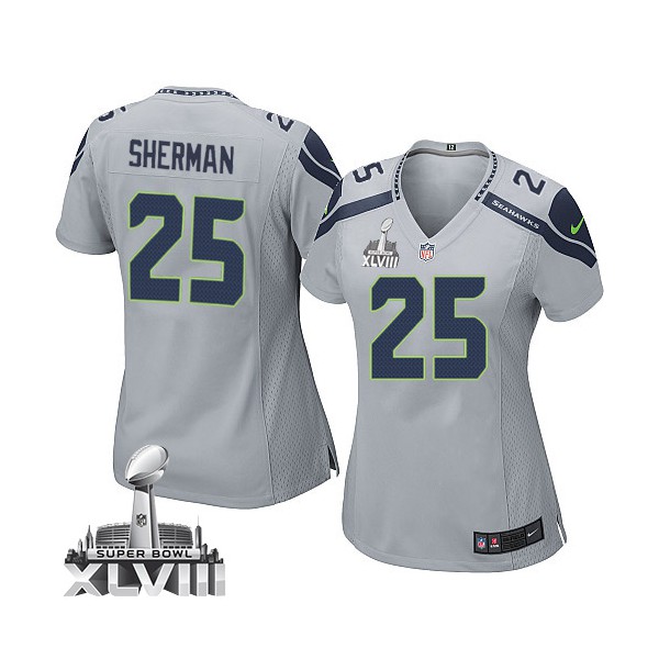 AvailableFemmes Nike Seattle Seahawks # 25 Richard Sherman Élite gris XLVIII de rechange Super Bowl NFL Maillot Magasin, Seattle Seahawks Maillot.